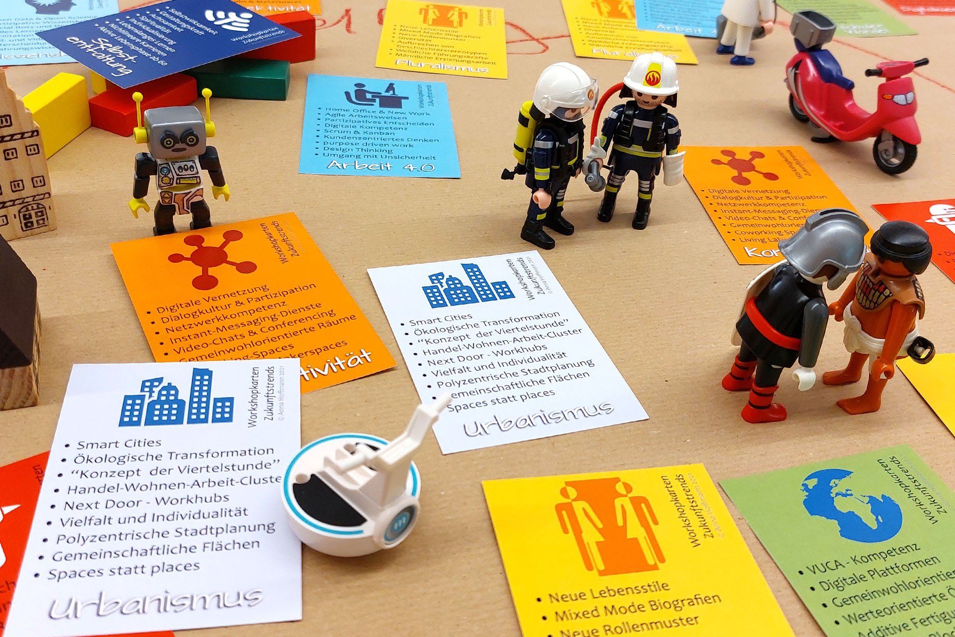 »Fridays in the future« ist ein Facilitationtool – durch eine besonders vorbereitete Umgebung und spezielle Werkzeuge werden die schöpferische Prozesse der Teilnehmenden gezielt unterstützt.